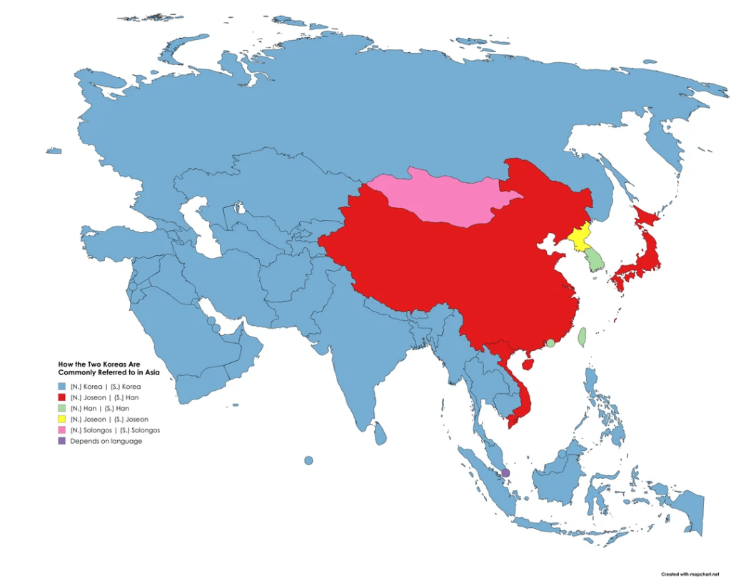 - Singapore / Malaysia: The Chinese-speaking diaspora in Singapore and Malaysia generally follow the naming conventions of Mainland China—using “Cháoxiǎn” (朝鲜) for North Korea and “Hán Guó” (韩国) for South Korea.